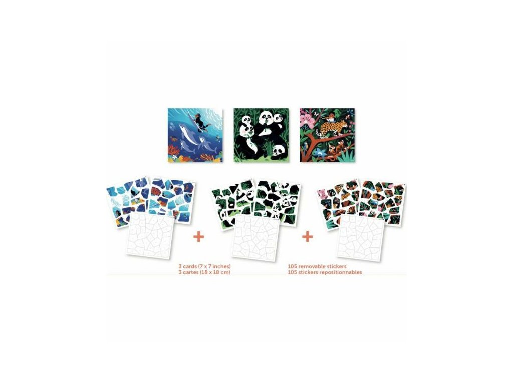 V balení najdete 3 karty k dolepení samolepkami (105 kusů). Snadno se odlupují a umísťují do obrázku. Samolepky jsou baleny v praktickém cestovním balení, které můžete vzít všude s sebou.