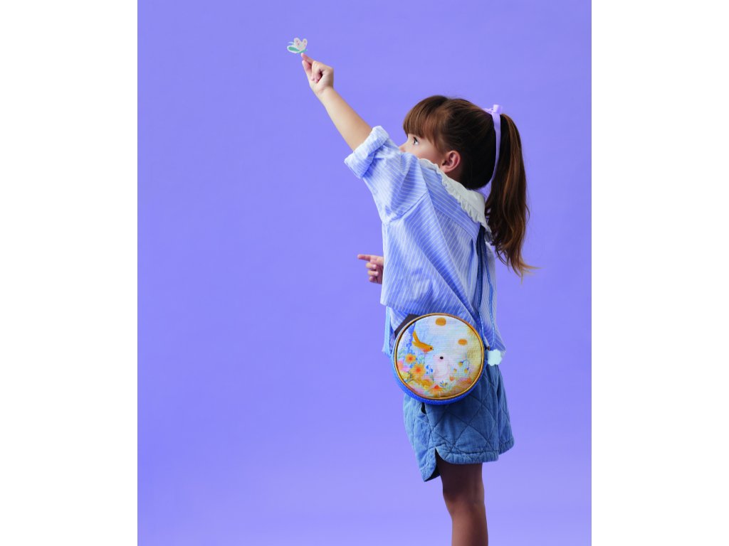 Kabelka je v originálnom a nežnom dizajne firmy Djeco. Je ozvláštnená lesklým prúžkom po okraji.