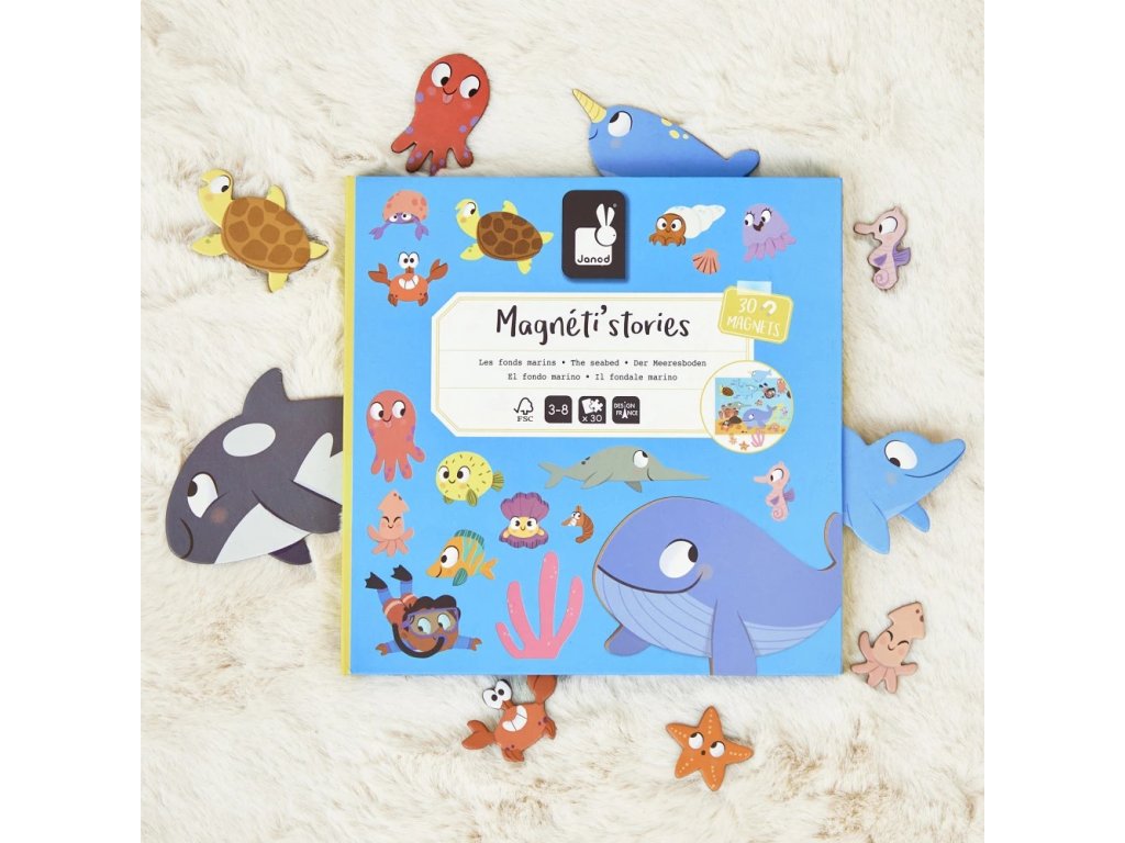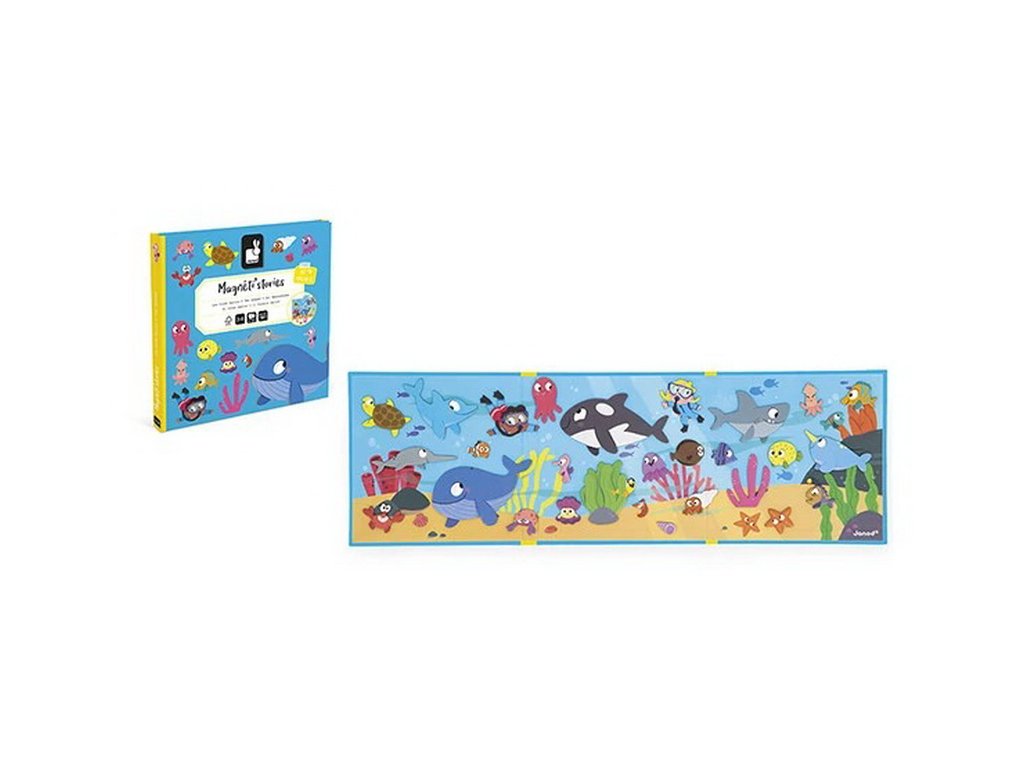 Magnetické príbehy Magnetistories Morský svet od firmy Janod je rozkladacia magnetická knižka, ktorá vás prenesie do sveta fantázie. Otvorte ju a zostavte vlastný príbeh z magnetiek. O čom bude rozprávať? Tentoraz sa prejdeme pod hladinou mora.
