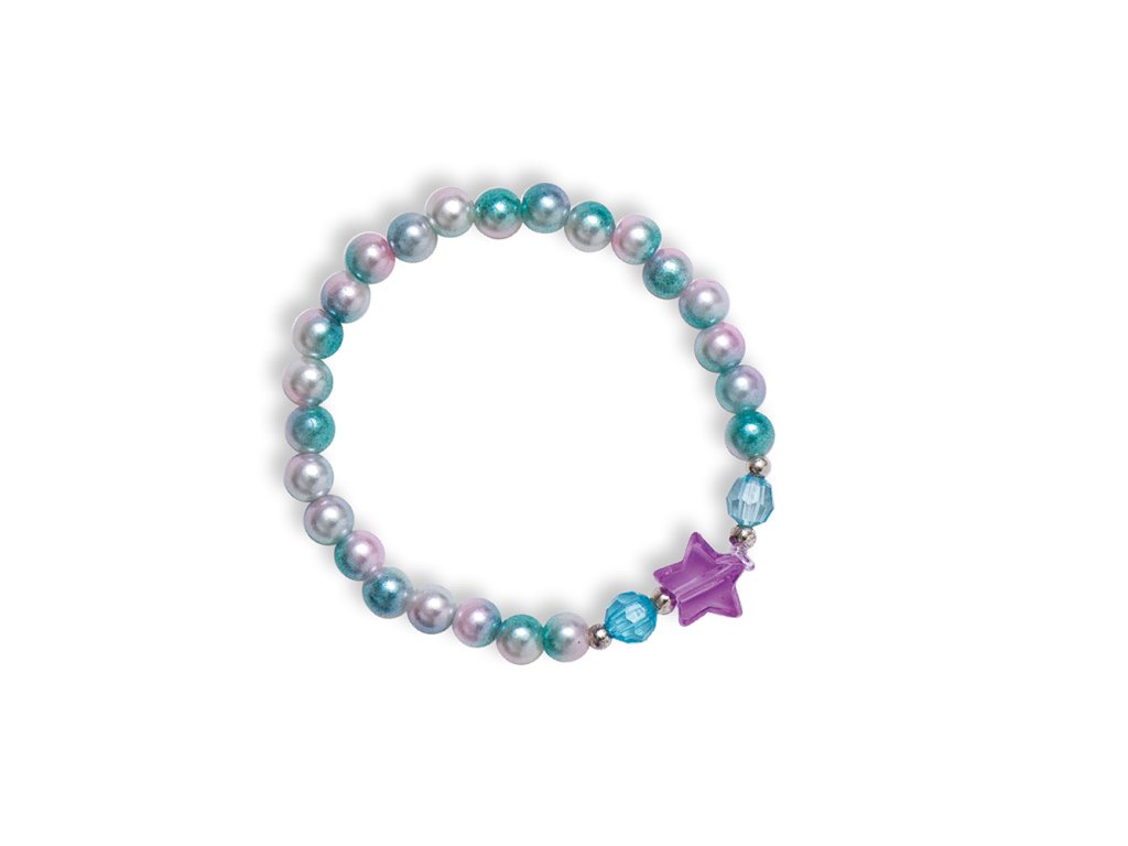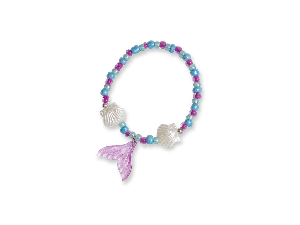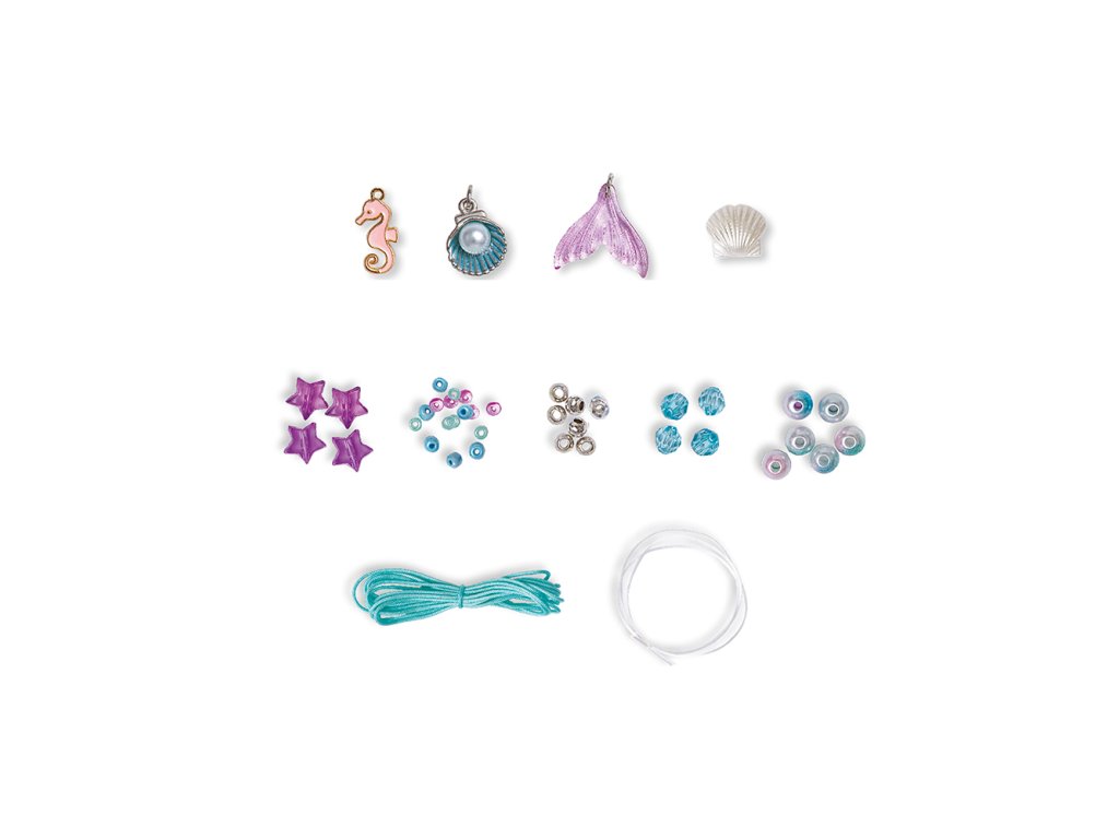 Sada obsahuje: 105 rokajlov (modrý, zelený a fialový), 34 dúhových guličiek, 15 trblietavých korálok, 5 dúhových mušľových guličiek, 4 fazetované guličky, 4 hviezdne guličky, chvost morskej panny, 1 prívesok s perlou, 1 niť a 1 elastická niť. Súčasťou je návod na tvorenie.