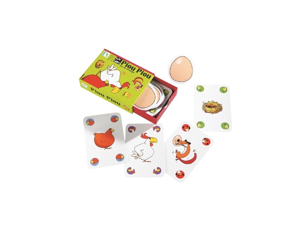 Kartová hra Piou Piou od firmy Djeco je strategická a zábavná hra pre celú rodinu.Kto získa ako prvé 3 kurčatá? Chce to šťastie, taktiku a premýšľanie