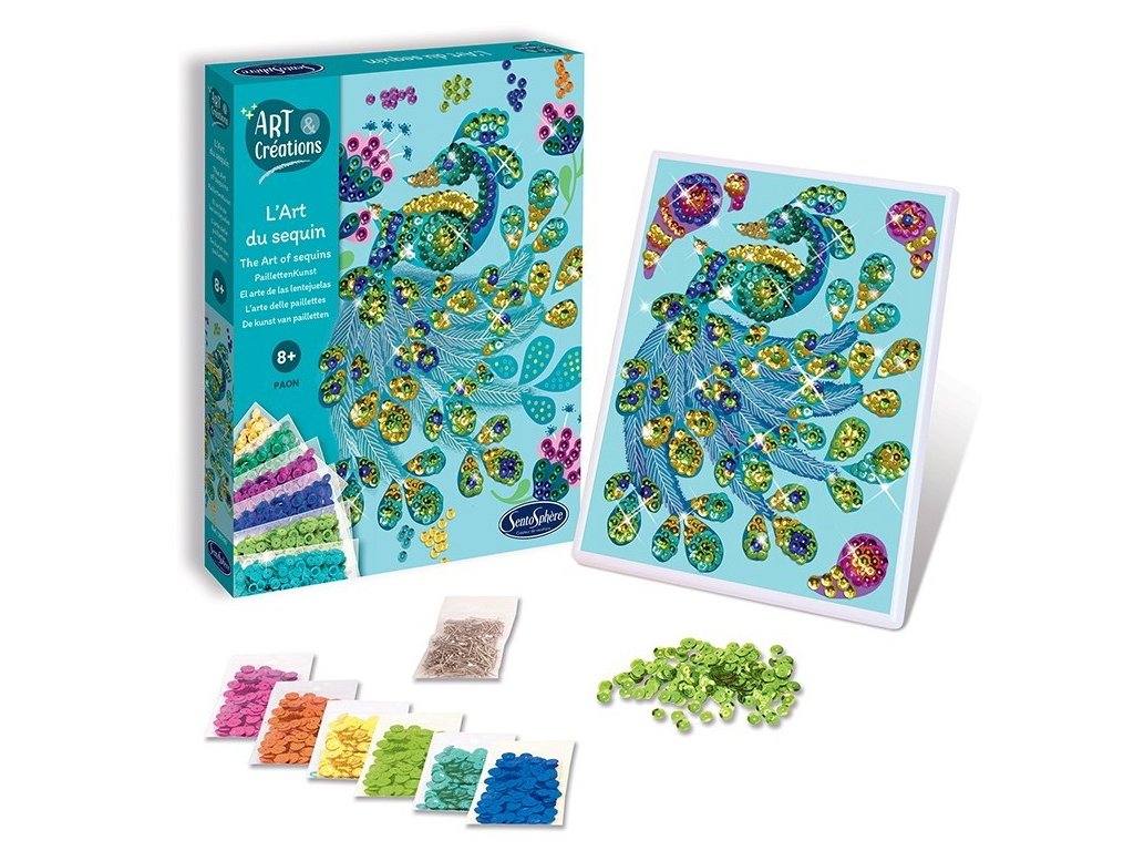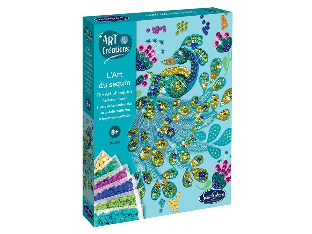 Kreatívna sada Farebné flitre - Páv od firmy Sentosphere je krásny darček pre tvorivé deti.