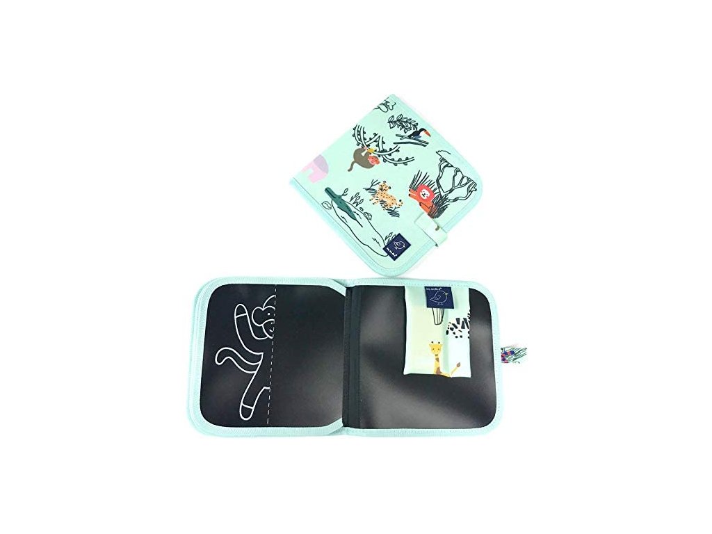 Jaq Jaq Bird je sada knižky a bezprašných kried, do ktorej si deti môžu kresliť obrázky stále dokola. Doma, v aute, u doktora, jednoducho všade, kde budú chcieť. Táto knižka navyše obsahuje tiež maľovanku - domalovánky. Na 4 stránkach deti nájdu spolovice namaľované zvieratko. Ich úlohou je domaľovať jeho druhú polovicu a potom ho treba vyfarbiť. Zároveň v knihe nájdu 4 voľné stránky, na ktoré si môžu maľovať podľa vlastnej fantázie. Deti sa tak môžu baviť podľa seba a zároveň sa naučia kresliť zvieratka zo safari (opice, slon, lev a žirafa).
