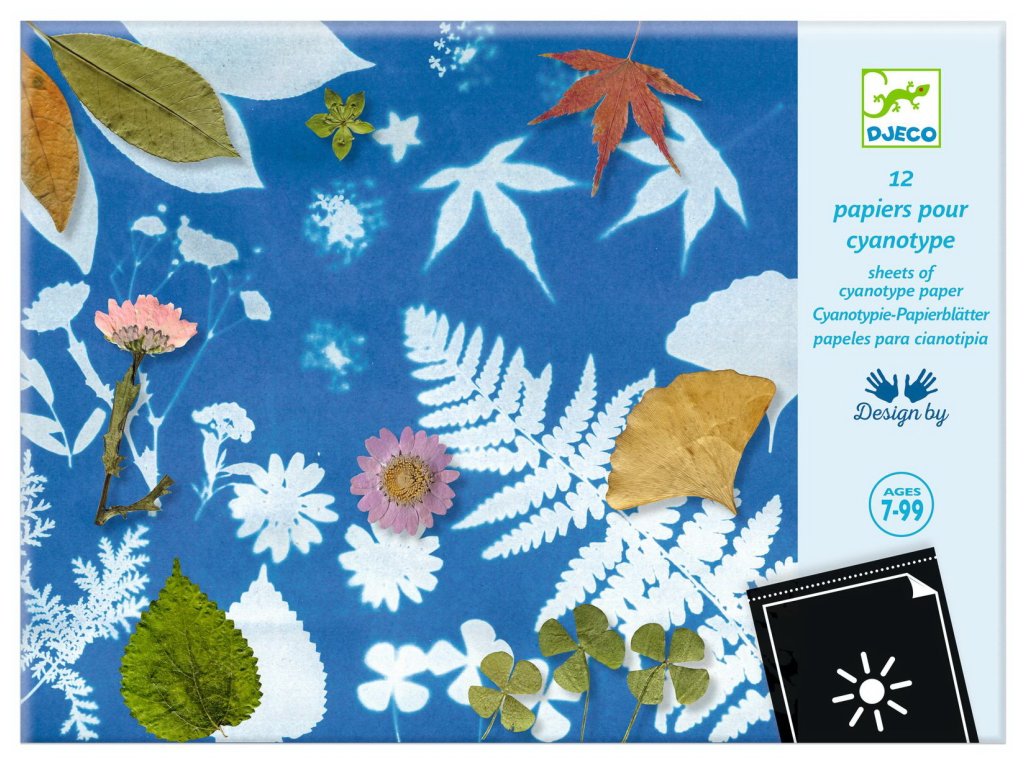 Sada 12 fotocitlivých papierov na kreatívnu kyanotypiu - tvorenie na fotopapier od firmy Djeco zaistí dostatok výtvarného tvorenia pre všetky deti i dospelých.