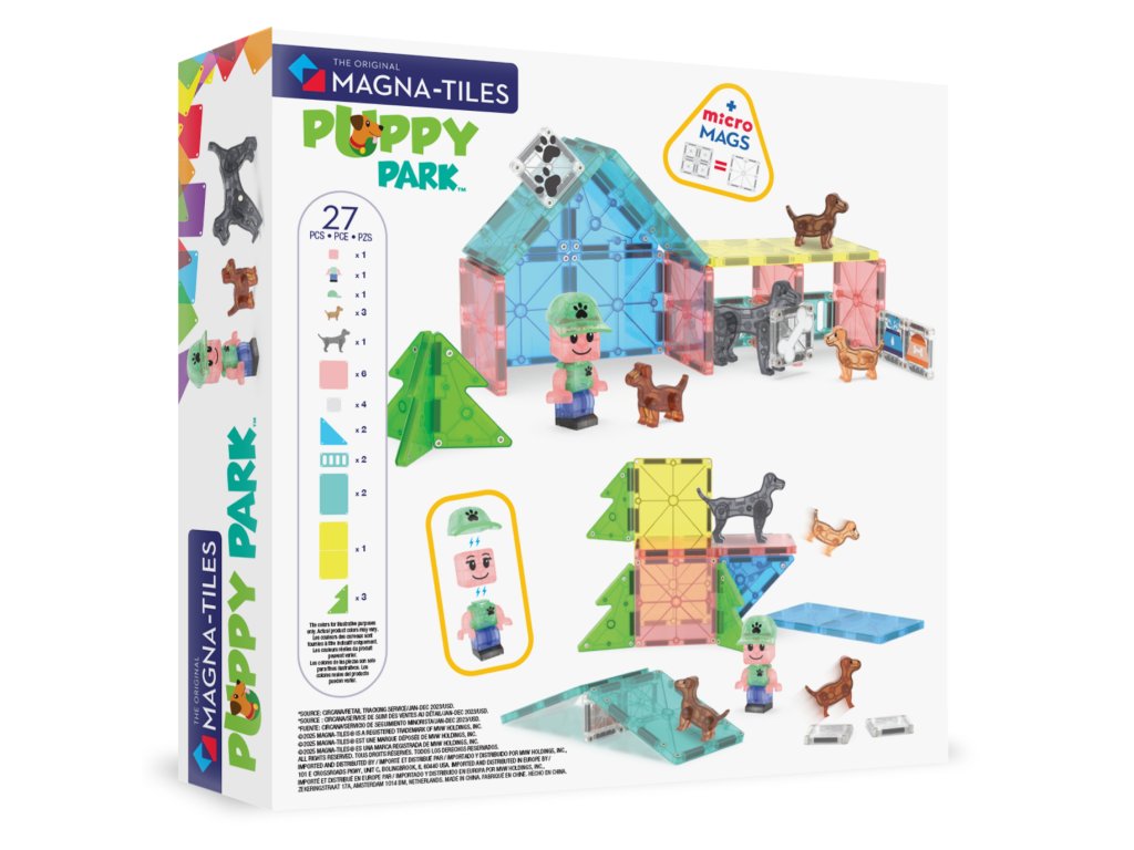 Stavebnica obsahuje všetky dôležité prvky pre stavbu parku pre šteniatka, ktorý poskytuje množstvo dobrodružstiev. Súčasťou je aj niekoľko magnetických postavičiek na hranie. Deti môžu postaviť bazén, výcvikovú dráhu alebo odpočinkové miesto pre malých psíkov. Magnetická stavebnica deti prenesie do sveta plného príbehov a zábavy.