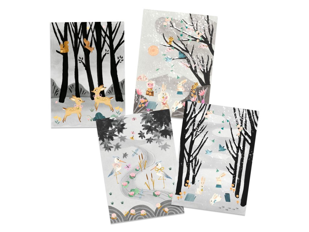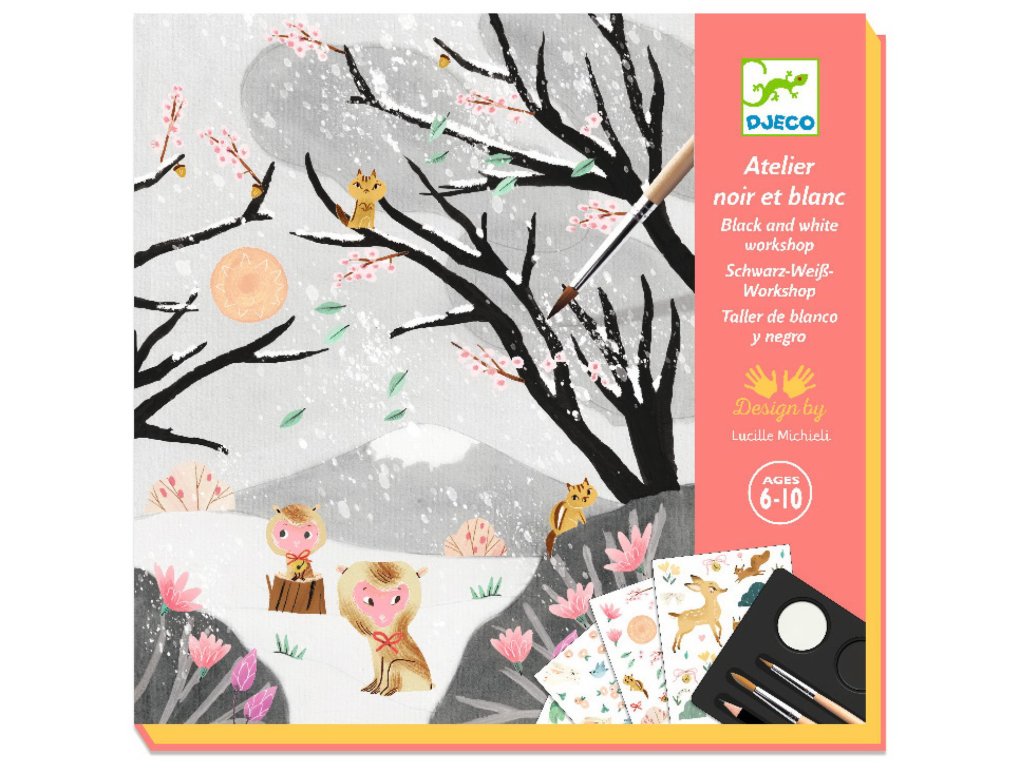 Maľba a koláž je inšpirovaná japonskými výtlačkami. Zoznamuje deti s technikou kreslenia atramentom, kedy stačí zriediť čiernu, aby získali rôzne odtiene.