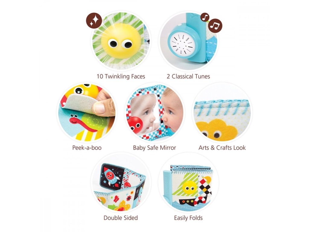 Kniha nie je len obyčajný hrajúci a svietiaci mantinel. Je to edukatívna hračka, ktorá vaše deti prevedie niekoľkými vývojovými krokmi.