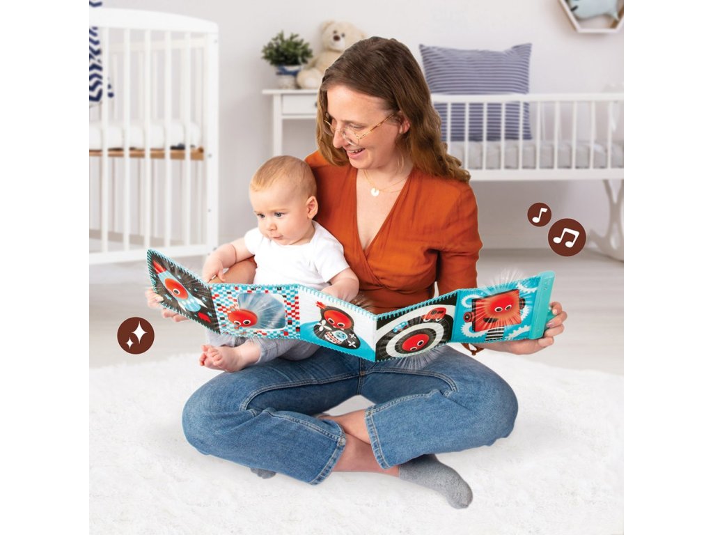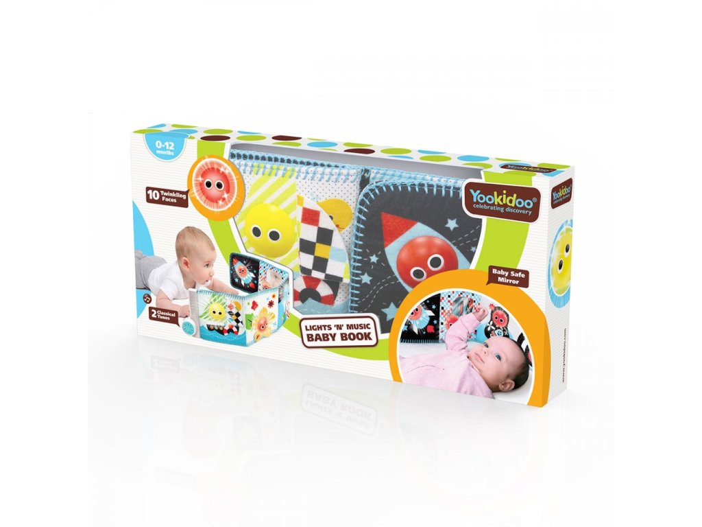 Prvá kniha so svetlami a hudbou od firmy Yookidoo je obojstranná blikajúca kniha s hrajúcou melódiou. Táto interaktívna hračka je skvelý darček pre všetky narodené bábätká a najmenšie deti.