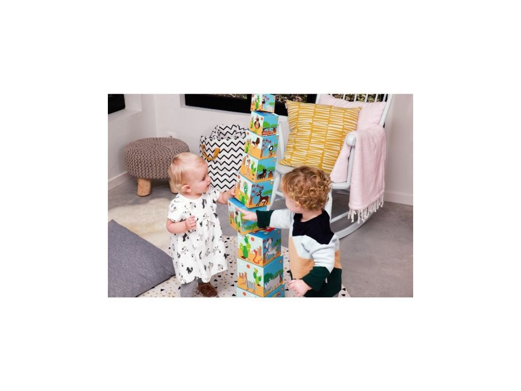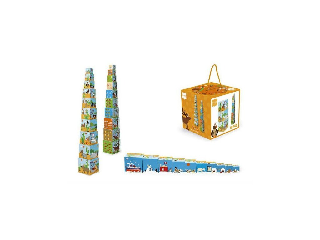 Na kostkách jsou zobrazena zvířata z celého světa. Děti se tak pomocí kostek učí skládat věž, sestavovat puzzle, poznávat zvířátka a počítat do 10.