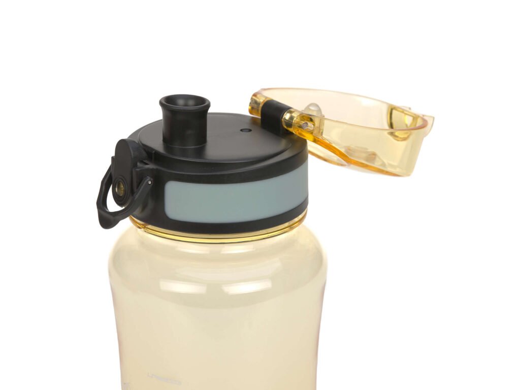 Láhev na pití je průhledná se stylovým nápisem. Má nepropustné víčko se snadným zavíráním a pojistkou. Stačí jen zmáčknout knoflík a víčko se samo otevře. Pítko je zajištěno silikonovým proužkem proti nežádoucímu protékání. Láhev tak můžete bezpečně uložit do batohu i kabelky.