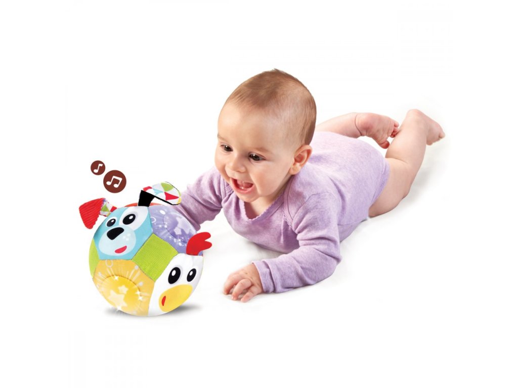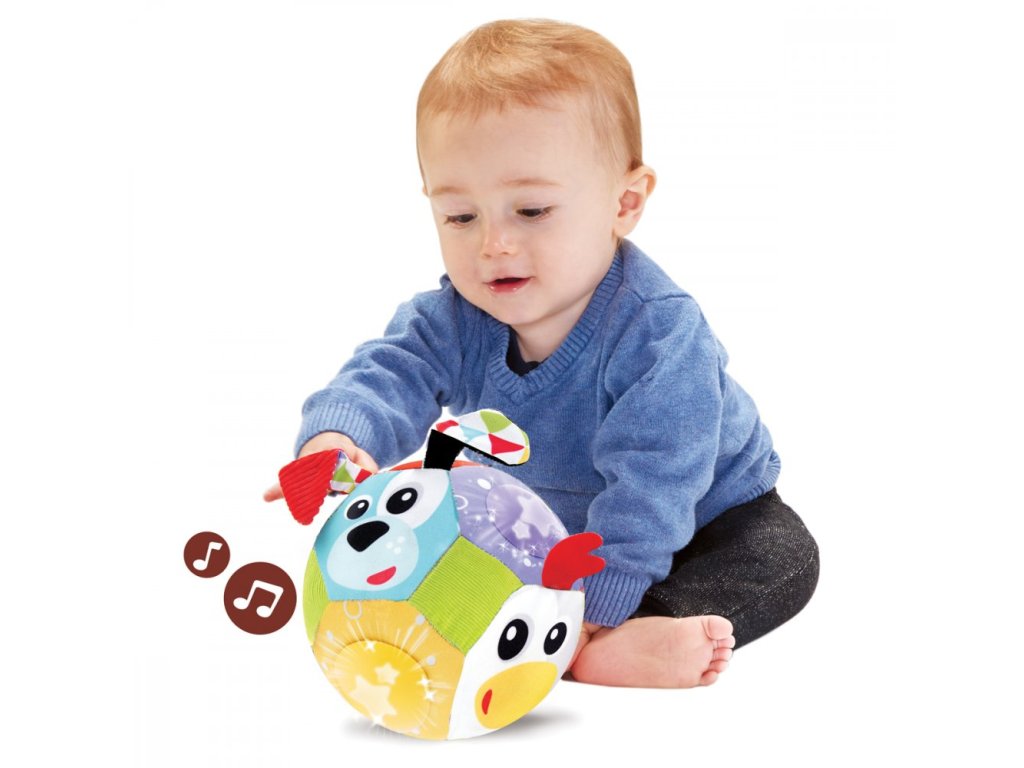 Interaktivní míč láká děti ke hře a prvnímu zkoumání. Při jakémkoliv pohybu začne hrát veselou melodii a rozblikají se na něm hvězdičky. Děti tak motivuje k pohybu a další hře.