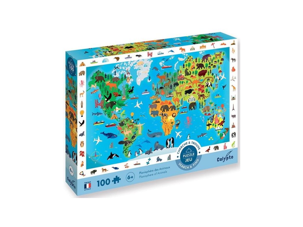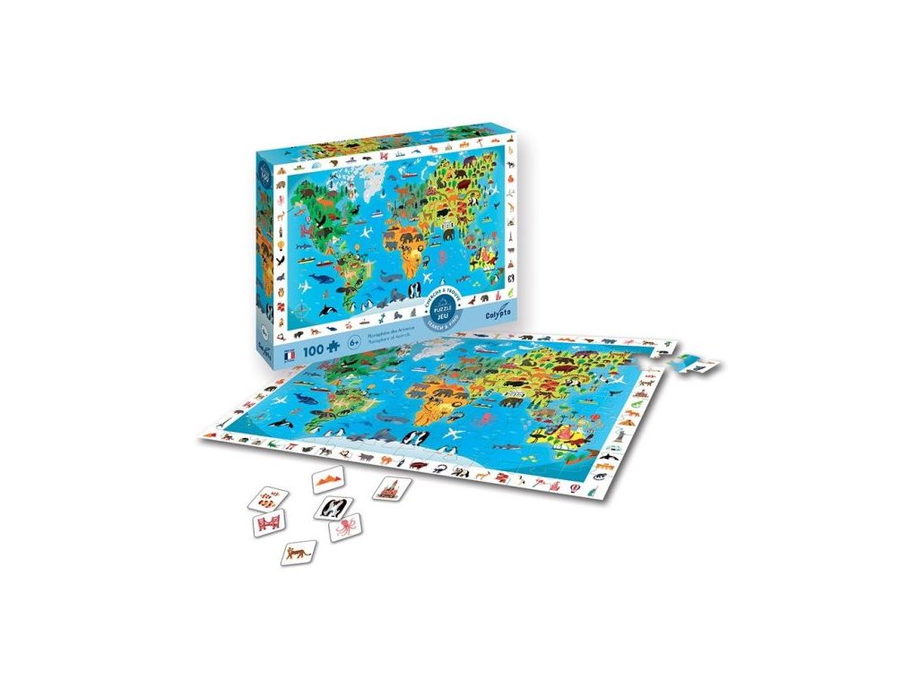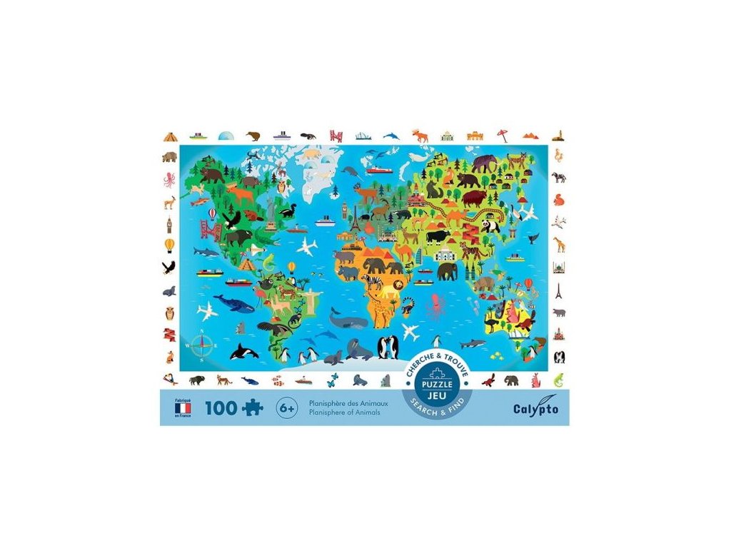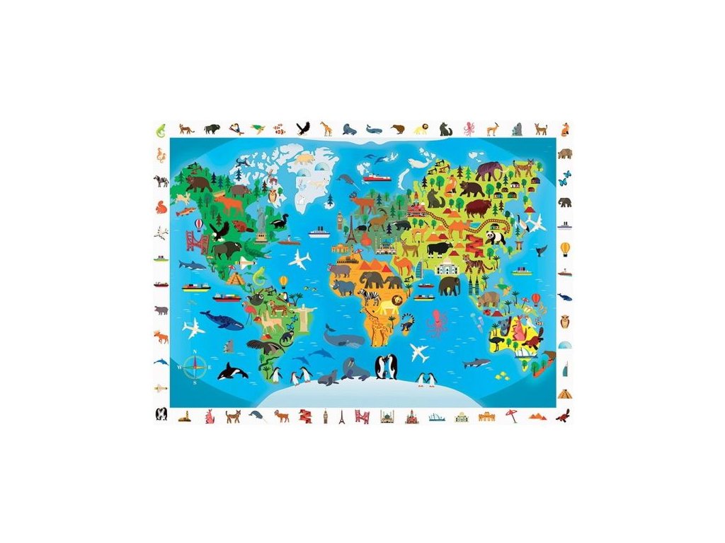 Vyhledávací puzzle Mapa světa se zvířaty, Sentosphere