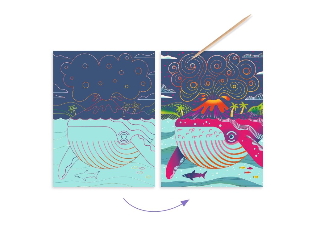 Vyškrabávací obrázky Na moři od firmy Djeco je kreativní sada, ve které si děti vyškrabáváním pomocí dřevěné tyčinky vytvoří krásné veselé a barevné obrázky.