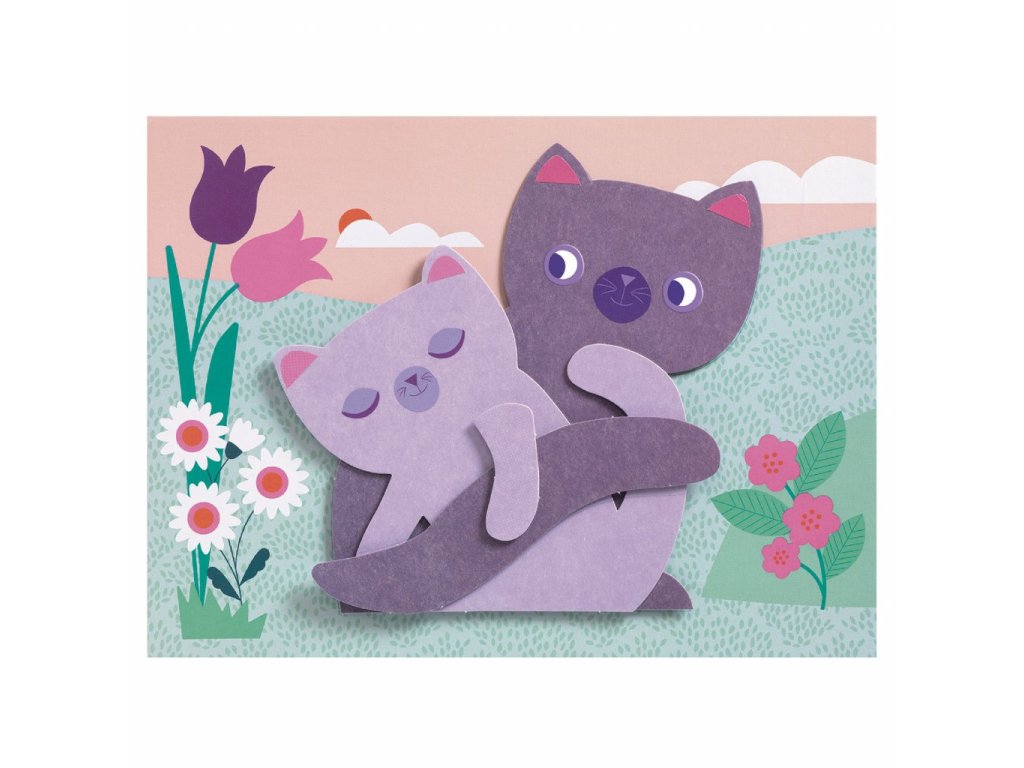 Výtvarná sada - kreativní koláže Něžná objetí od firmy Djeco jsou nádherné obrázky k dotvoření pomocí dalších dílků a oboustranných samolepek. Děti si vytvoří vlastní krásnou dekoraci.