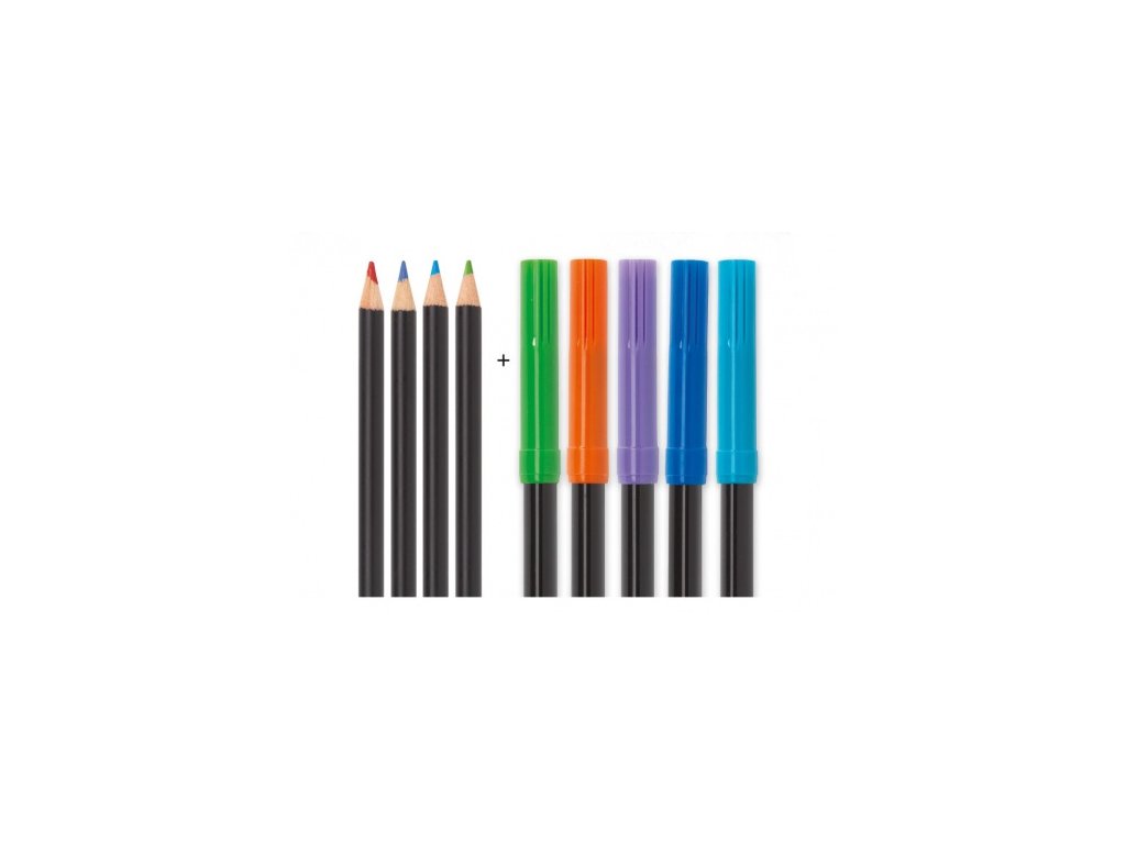 Obsahuje: 4 pevné předlohy, 4 pastelky, 5 fixů a podrobný návod ke kresbě krok za krokem.