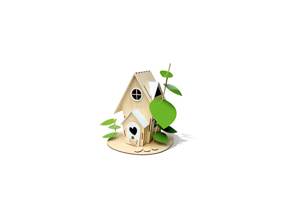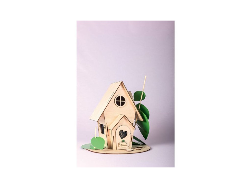 Děti si postupně slepí předpřipravené dřevěné díly pomocí lepidla a natřou je bílou akrylovou barvou. Vytvoří si tak vlastní krásný domeček, ve kterém se s radostí zabydlí každá víla. Domeček může zdobit dětský pokojík, balkon nebo třeba terasu.