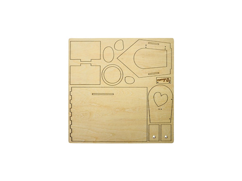 Sada obsahuje: dřevěné díly, lepidlo, štětec a bílou akrylovou barvu.