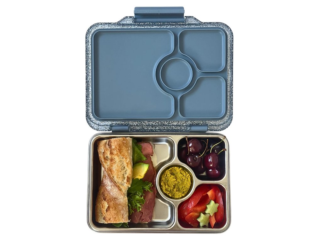 Yumbox Pret je nepropustný nerezový box. Jedná se o nerezový jídelní box se 4 částmi, které usnadňují zabalení výživného oběda či jiného jídla do práce, školy, na sport i na cesty.